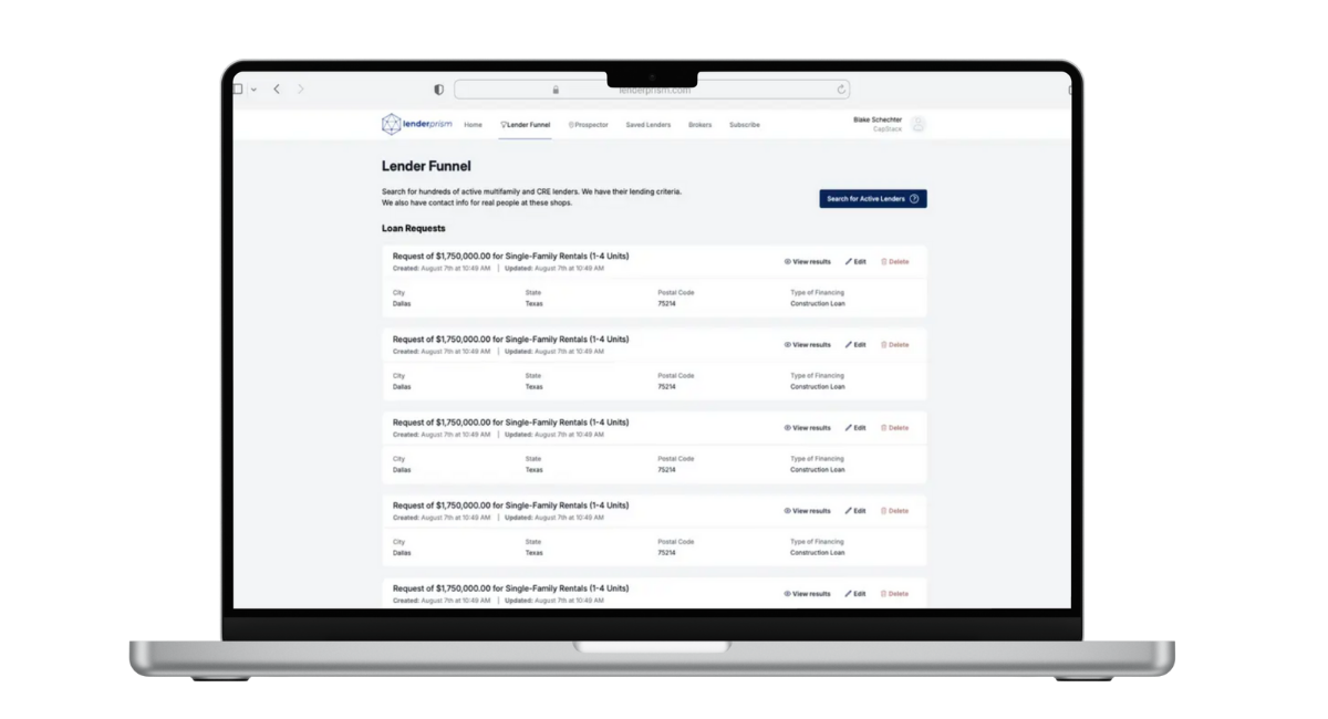 LenderPrism is a debt & equity marketplace to help brokers drive more deal flow and close more loans. We put you at the center of the capital markets ecosystem. Driving borrowers to you while providing you with the most accurate and comprehensive list of debt & equity sources in the market.